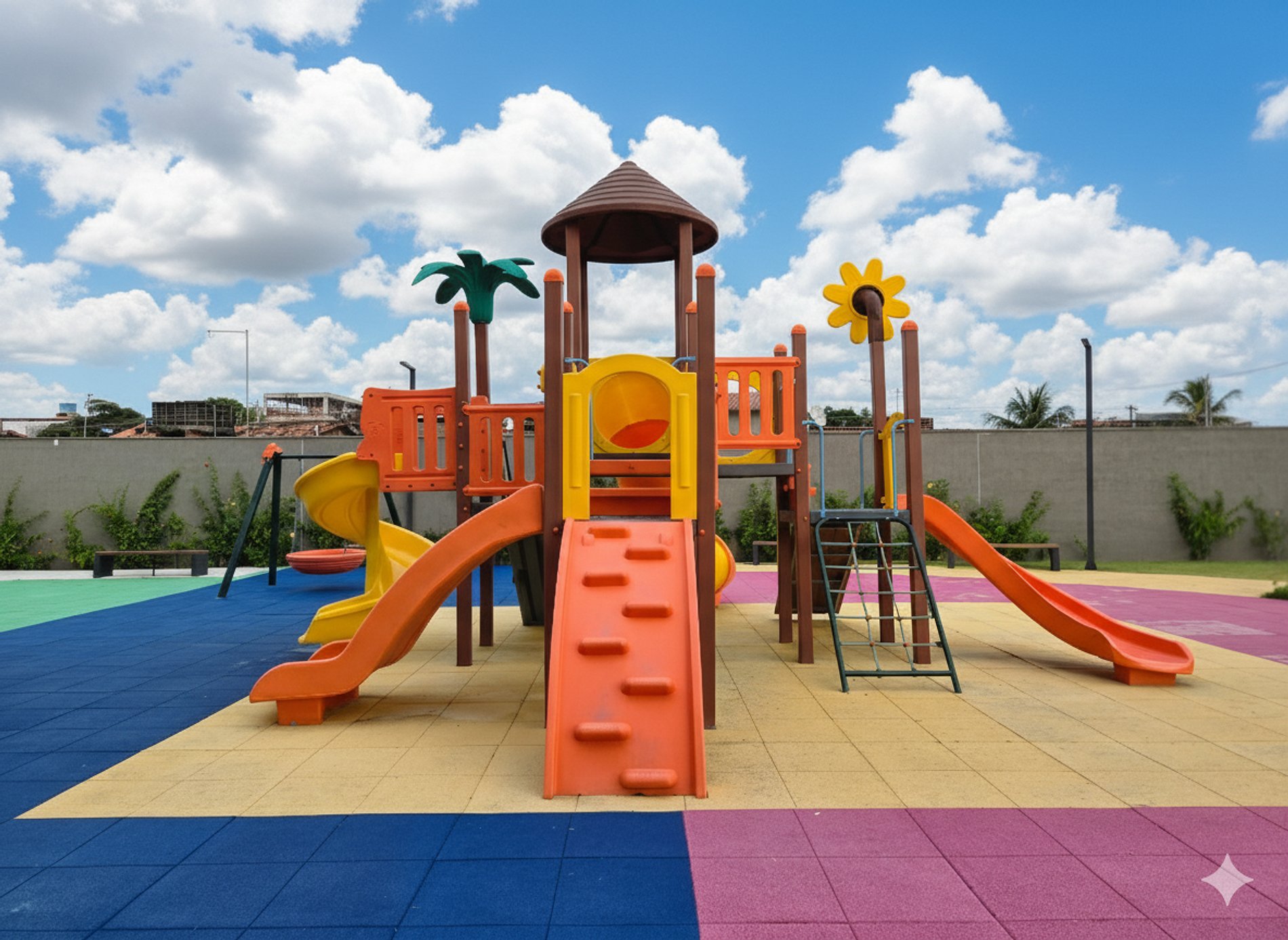 Lazer para Todos: Além da piscina, o empreendimento possui uma estrutura de lazer completa com quadra esportiva, playground para as crianças e sala de jogos.