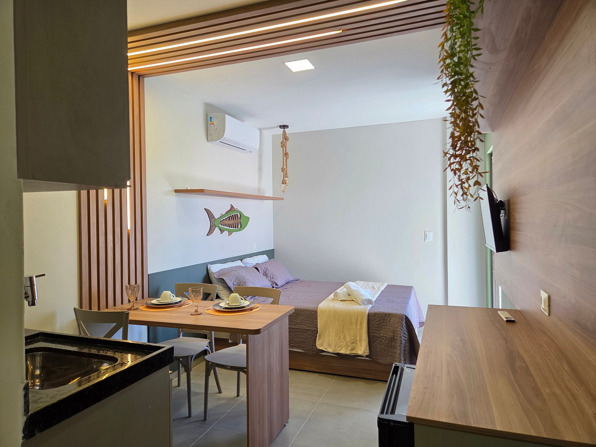 Com design moderno, decoração acolhedora e acabamento de alto padrão, o apartamento oferece conforto e praticidade em cada detalhe. A fechadura digital garante mais segurança e comodidade na chegada, enquanto os ambientes climatizados proporcionam bem-estar durante toda a estadia.