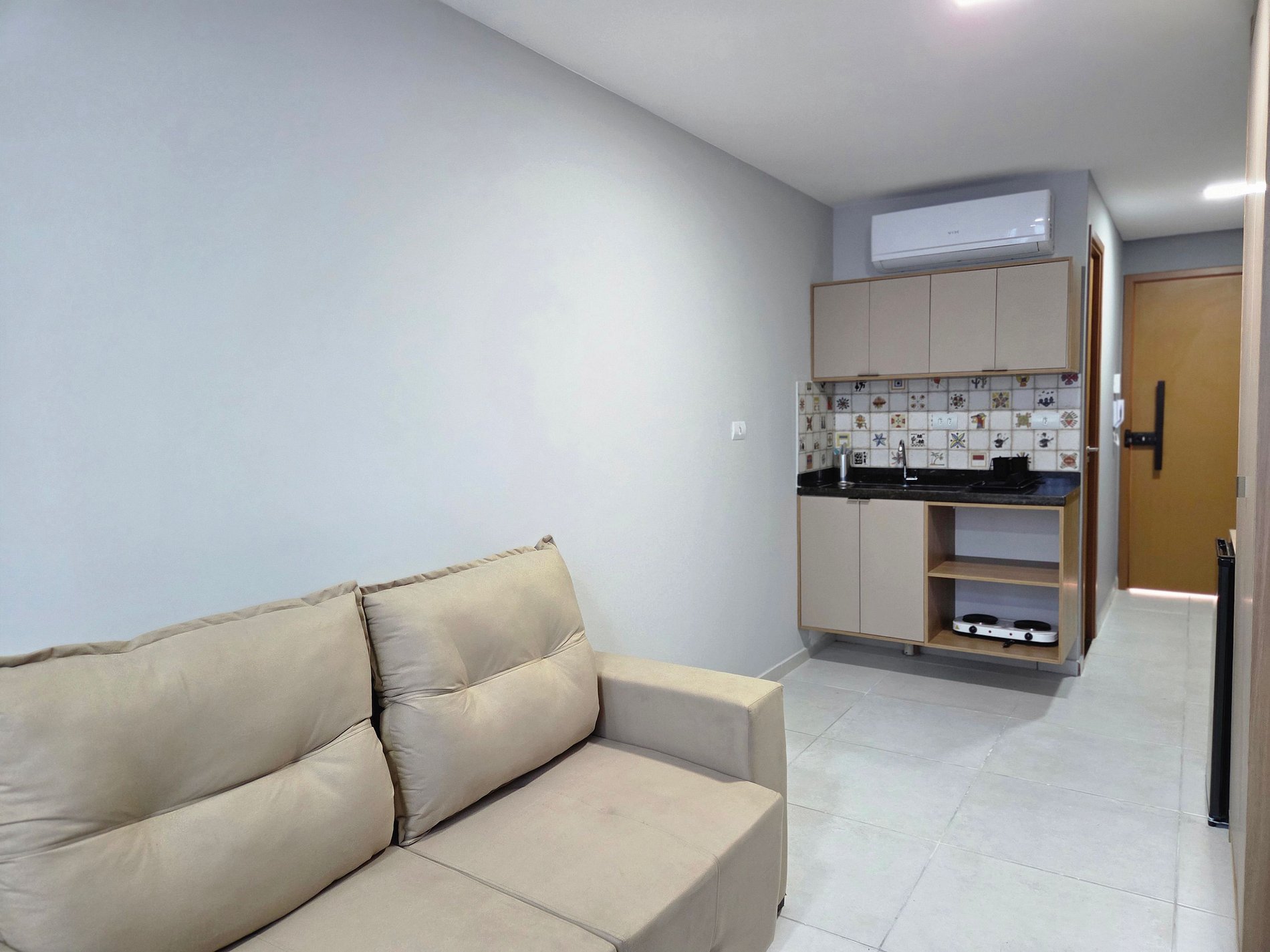 Esse charmoso studio no Edifício Sol e Mar foi pensado para quem busca praticidade sem abrir mão de conforto. O espaço é compacto, bem planejado e decorado com toques modernos que criam uma atmosfera acolhedora, perfeita para casais ou viajantes em busca de uma estadia funcional em Porto de Galinhas.