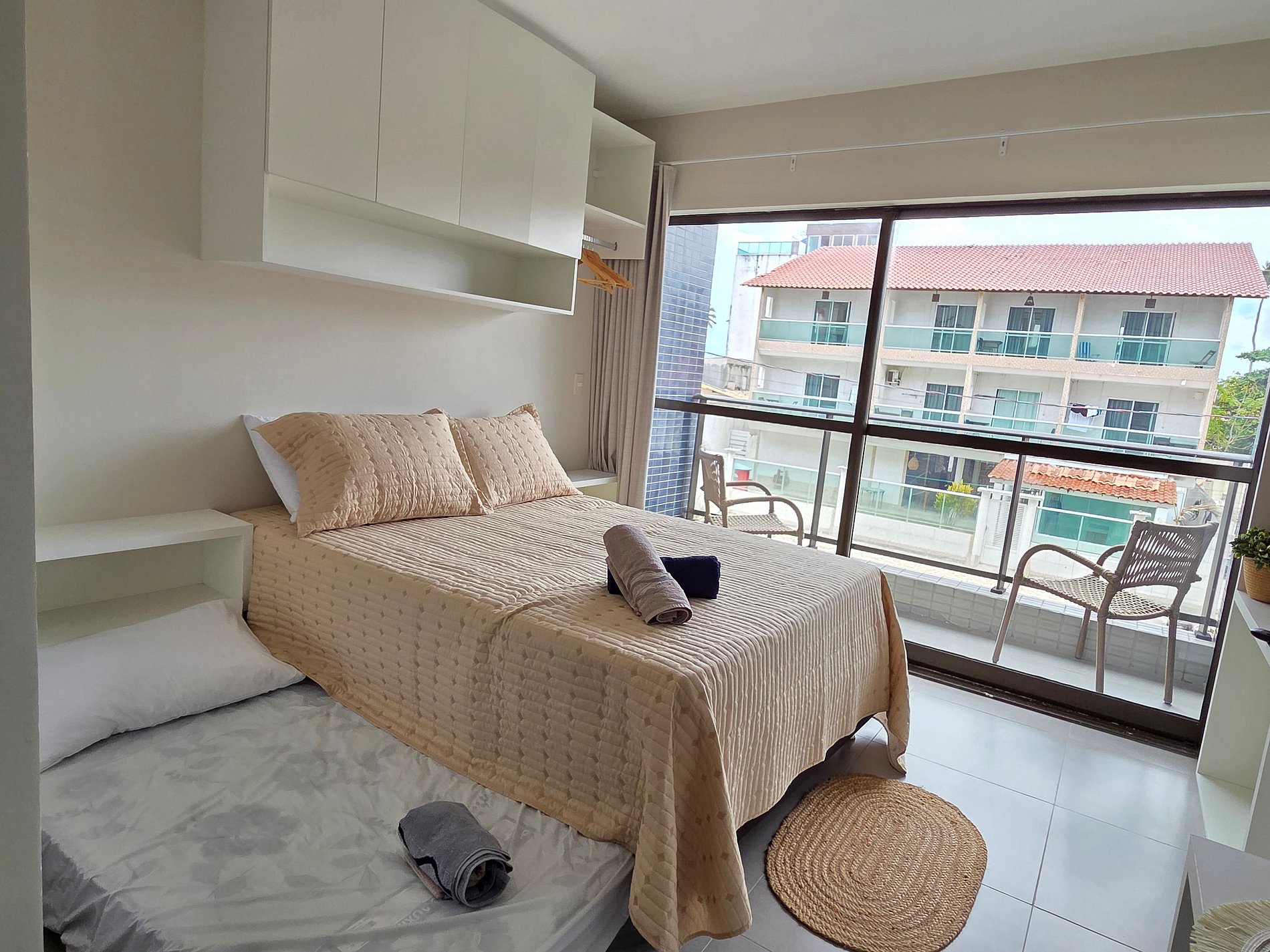 Os hóspedes têm acesso a toda a estrutura do condomínio: piscina, academia, brinquedoteca, restaurante e recepção 24h, além da localização privilegiada — perto das piscinas naturais, da Rua das Sombrinhas e dos melhores restaurantes da vila.