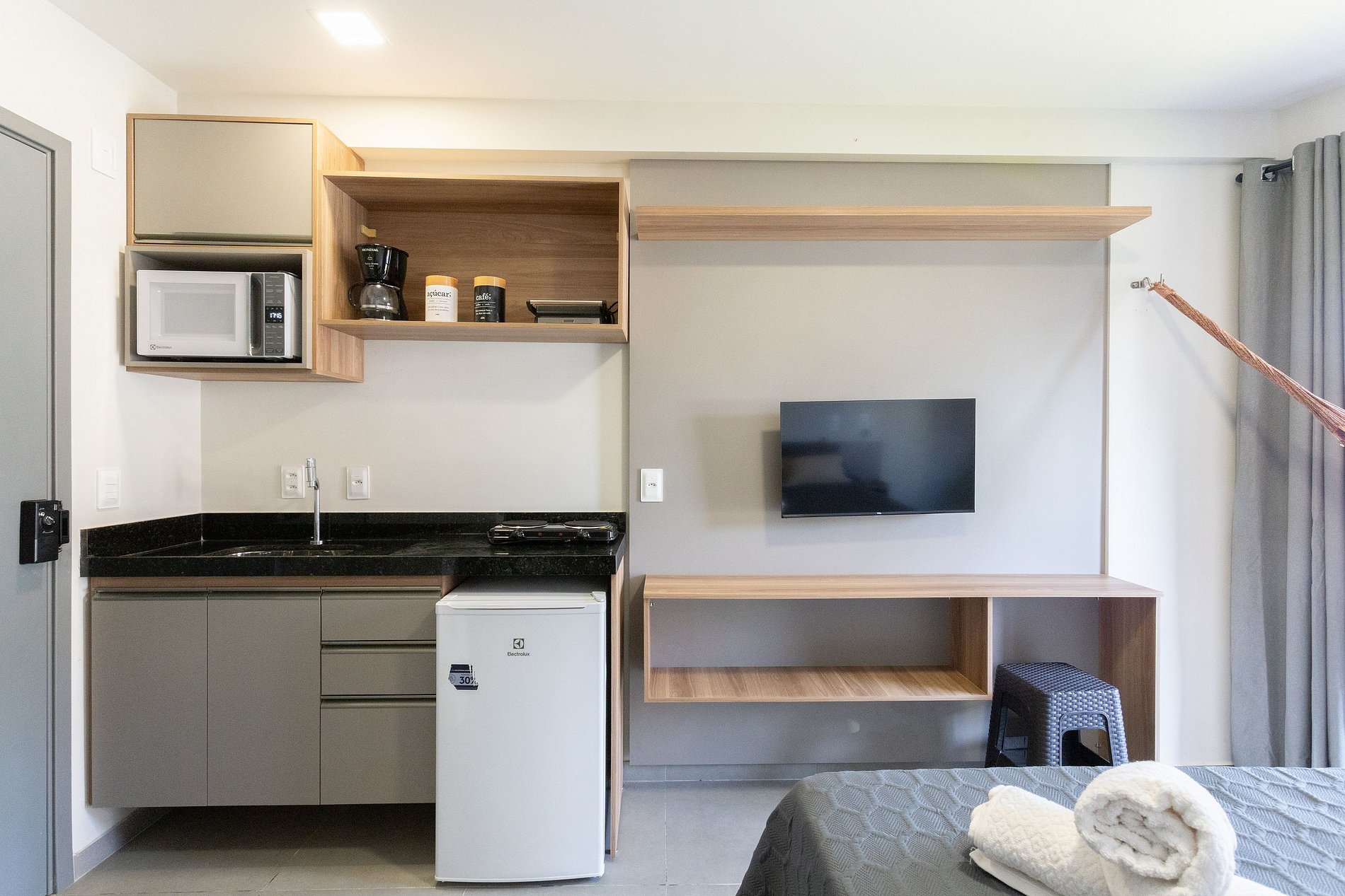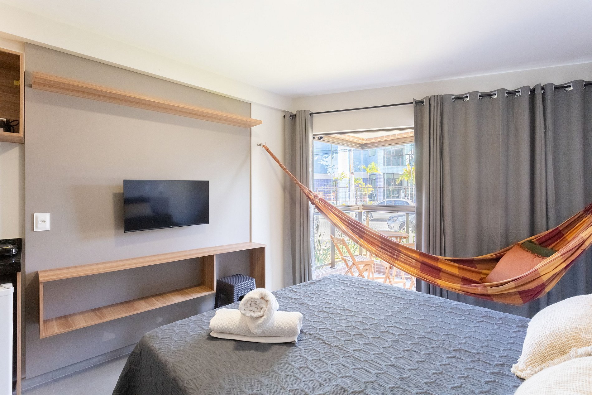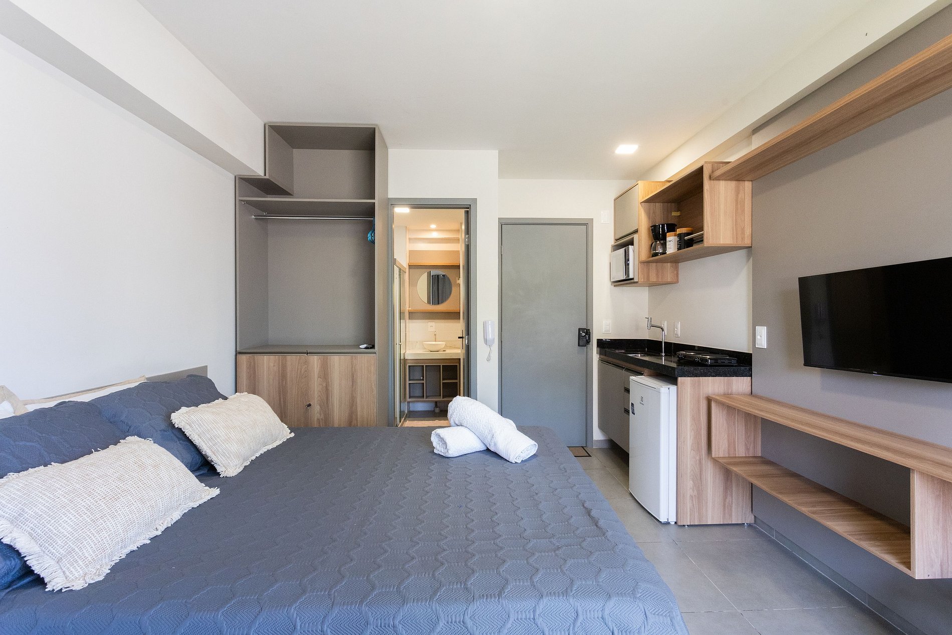 Com design moderno, decoração acolhedora e acabamento de alto padrão, o apartamento oferece conforto e praticidade em cada detalhe. A fechadura digital garante mais segurança e comodidade na chegada, enquanto os ambientes climatizados proporcionam bem-estar durante toda a estadia.