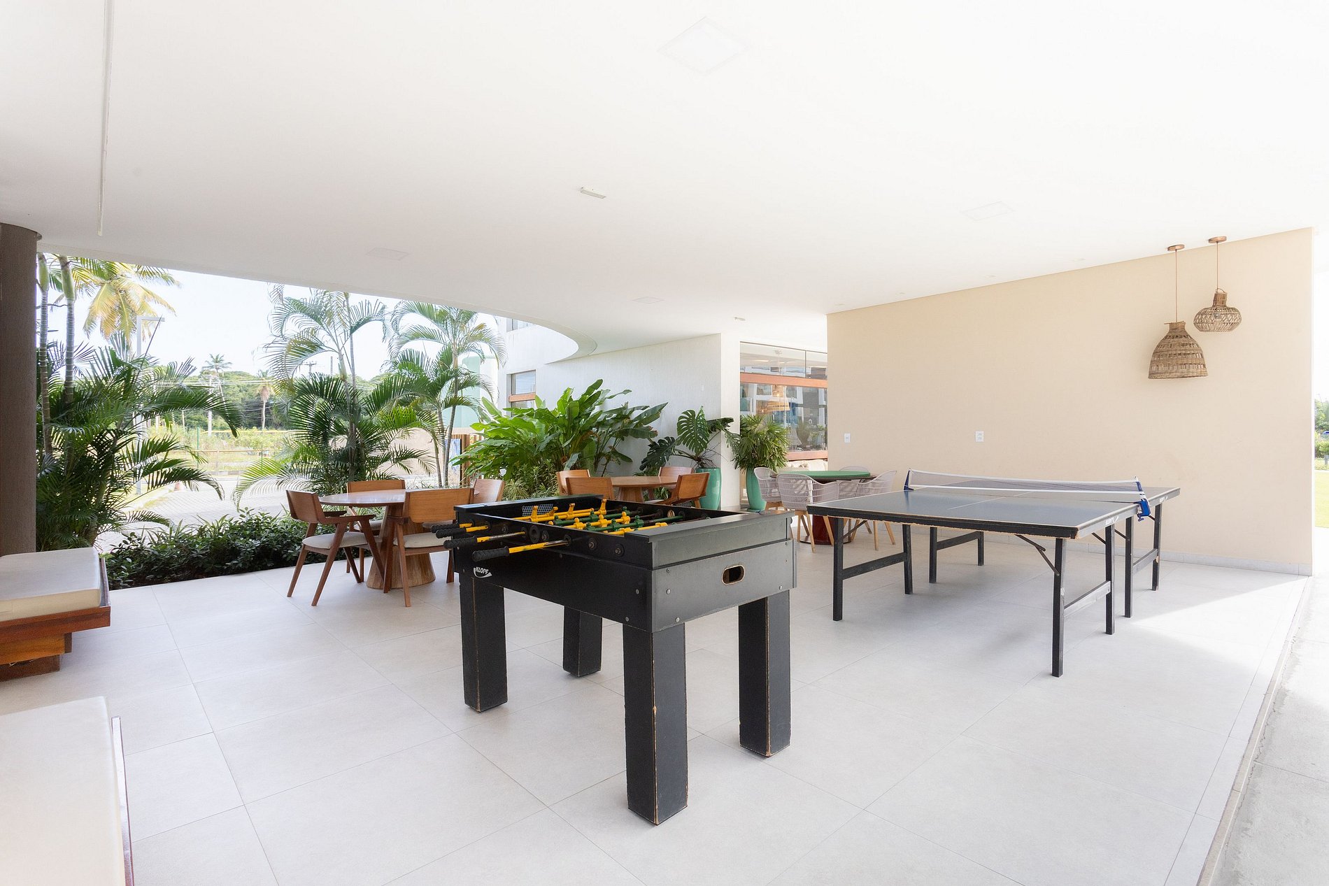 Salão de festas e salão de jogos.