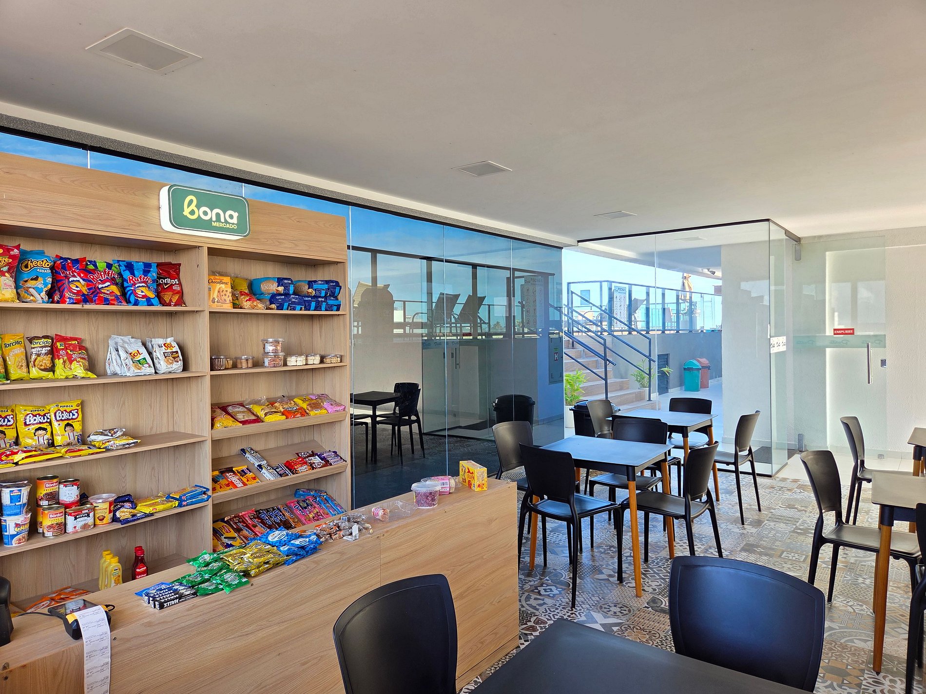 Mercado selfie pay no prédio, Academia, salão de jogos e área de lazer com piscina na cobertura