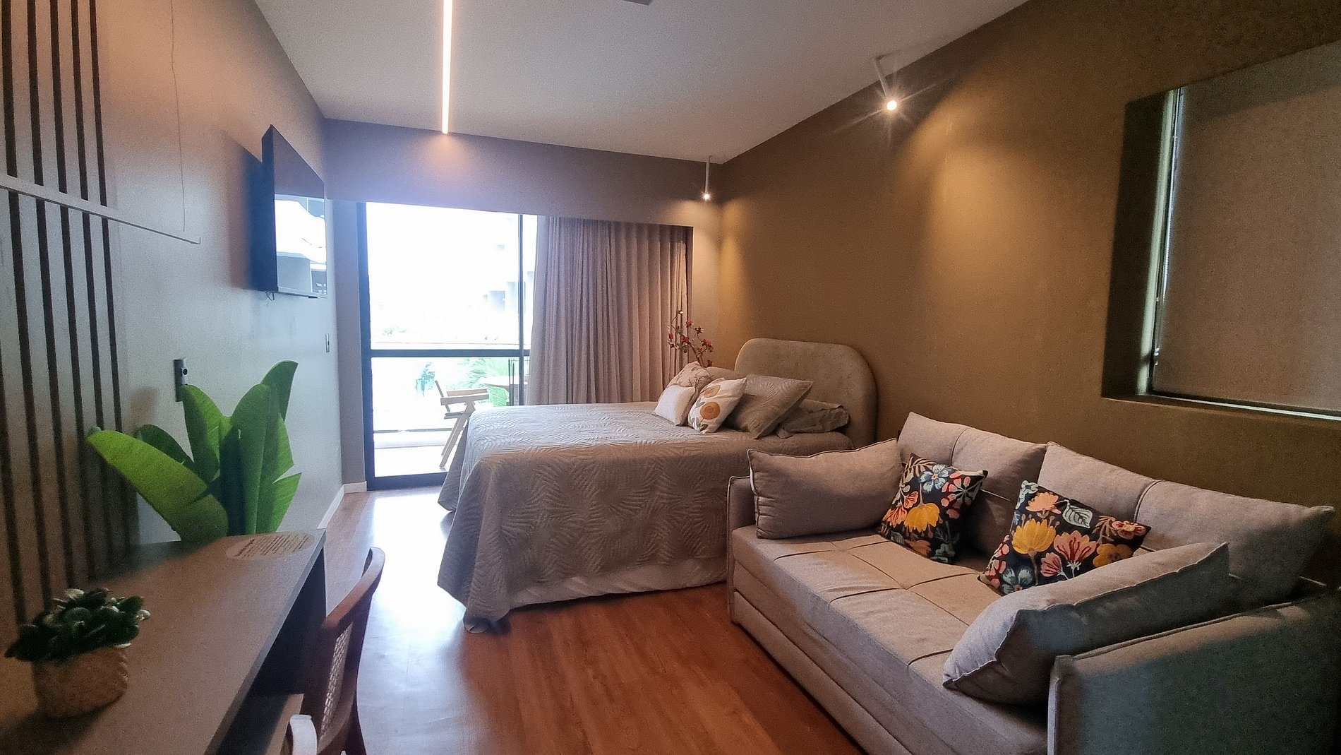 Este studio oferece o equilíbrio ideal entre espaço, elegância e funcionalidade. Perfeito para casais exigentes, que valorizam conforto e uma boa experiência.
