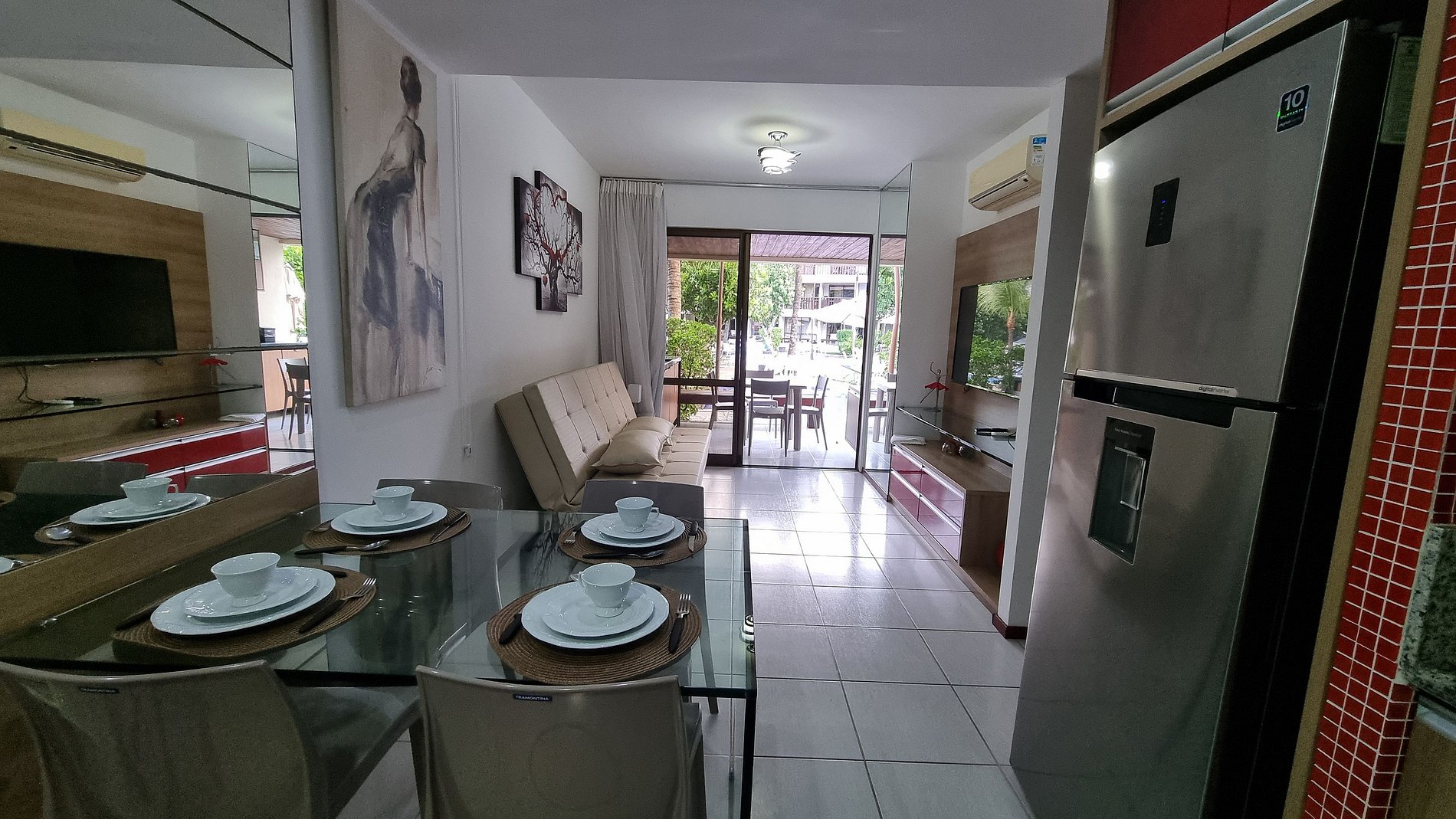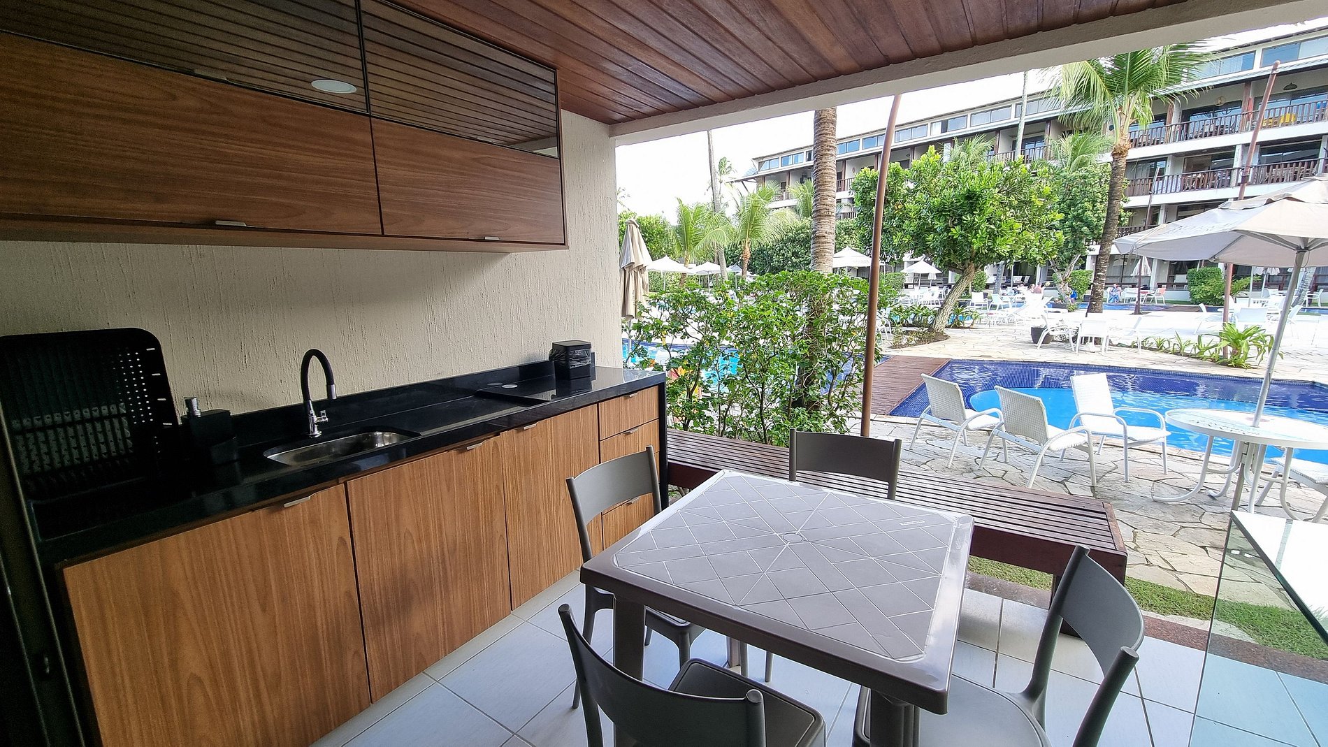 Localizado em frente às piscinas principais, o imóvel se destaca pela sua decoração refinada, ambientes climatizados e integração harmoniosa entre os espaços. O projeto foi pensado para oferecer uma estadia com conforto de alto padrão, seja para curtas temporadas ou estadias mais prolongadas.