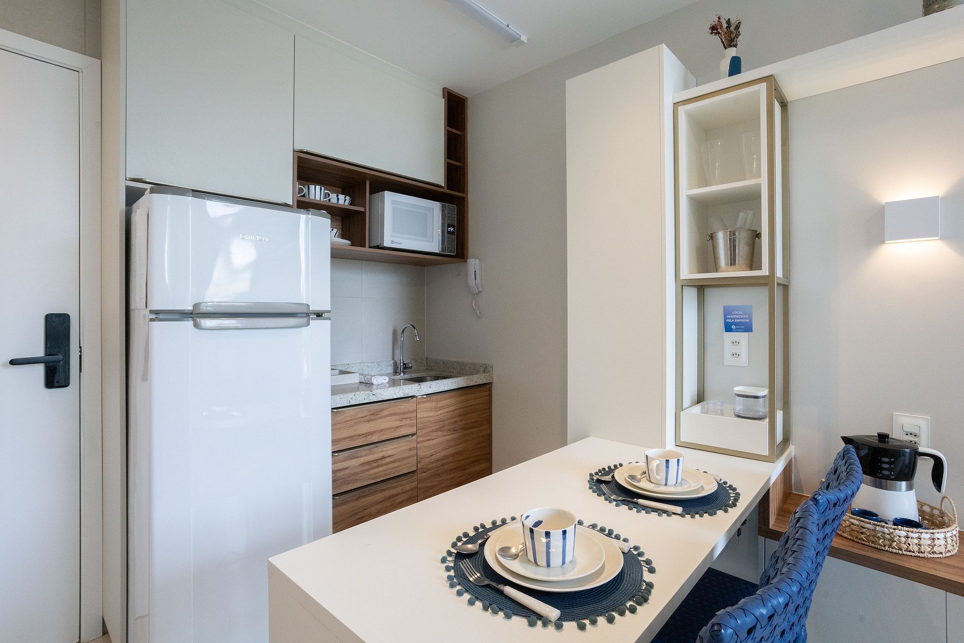 Desfrute do Bistrô Muro Alto com buffet de café da manhã e refeições ao lado da piscina. Recepção 24h, segurança com CFTV, lavanderia e coworking completam a estrutura. Tudo isso a menos de 10 portas da praia e do centrinho.