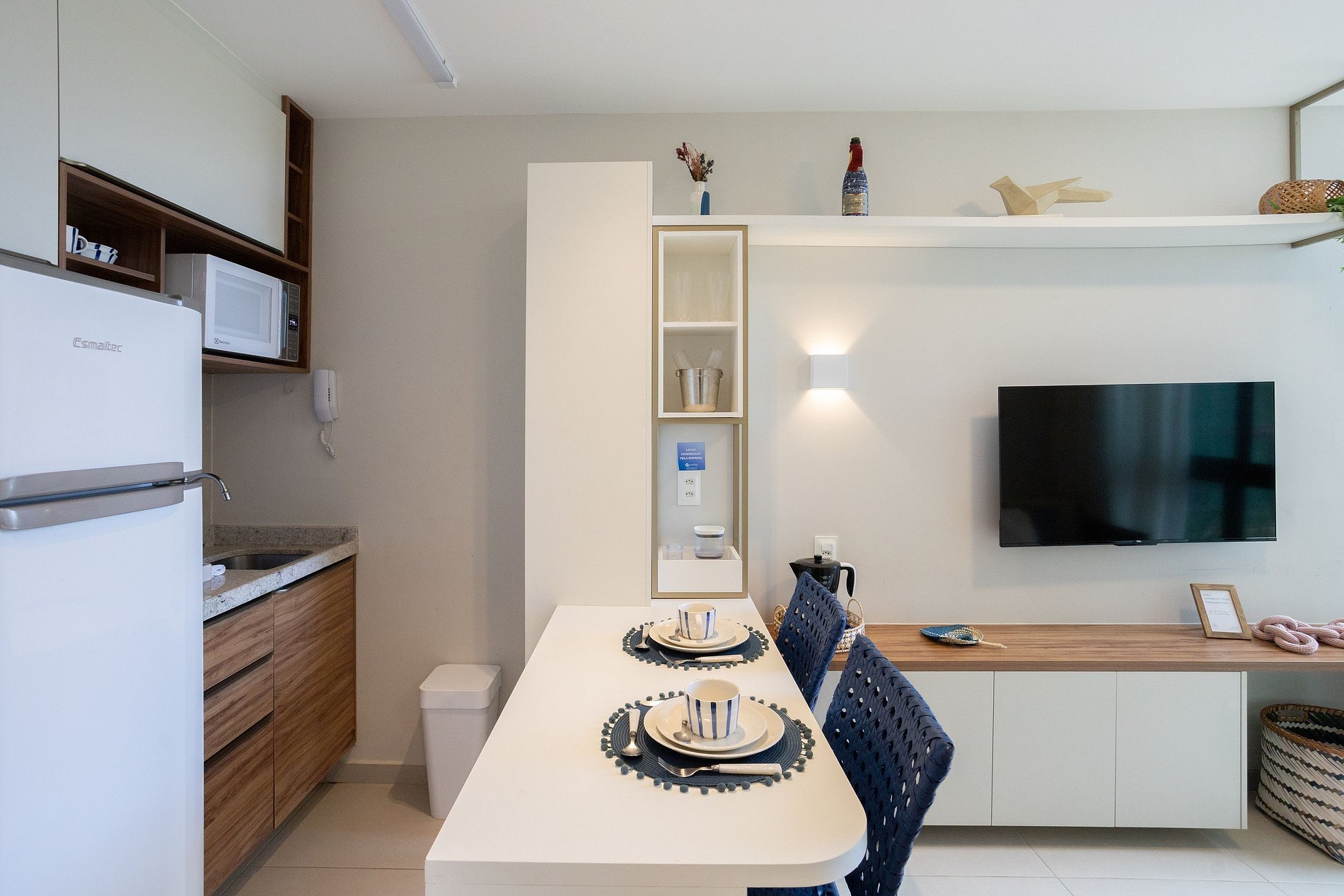 Relaxe com estilo nesse apê completo e super charmoso no Sunny Hall, a poucos passos do centrinho de Porto de Galinhas. Com um quarto climatizado, cozinha equipada e muito conforto. O condomínio é daqueles que parece resort: tem piscinas, spa, academia, brinquedoteca, restaurante e recepção 24h. E o melhor? Dá pra fazer tudo a pé! Praia, lojinhas, restaurantes e mercado — tudo pertinho.