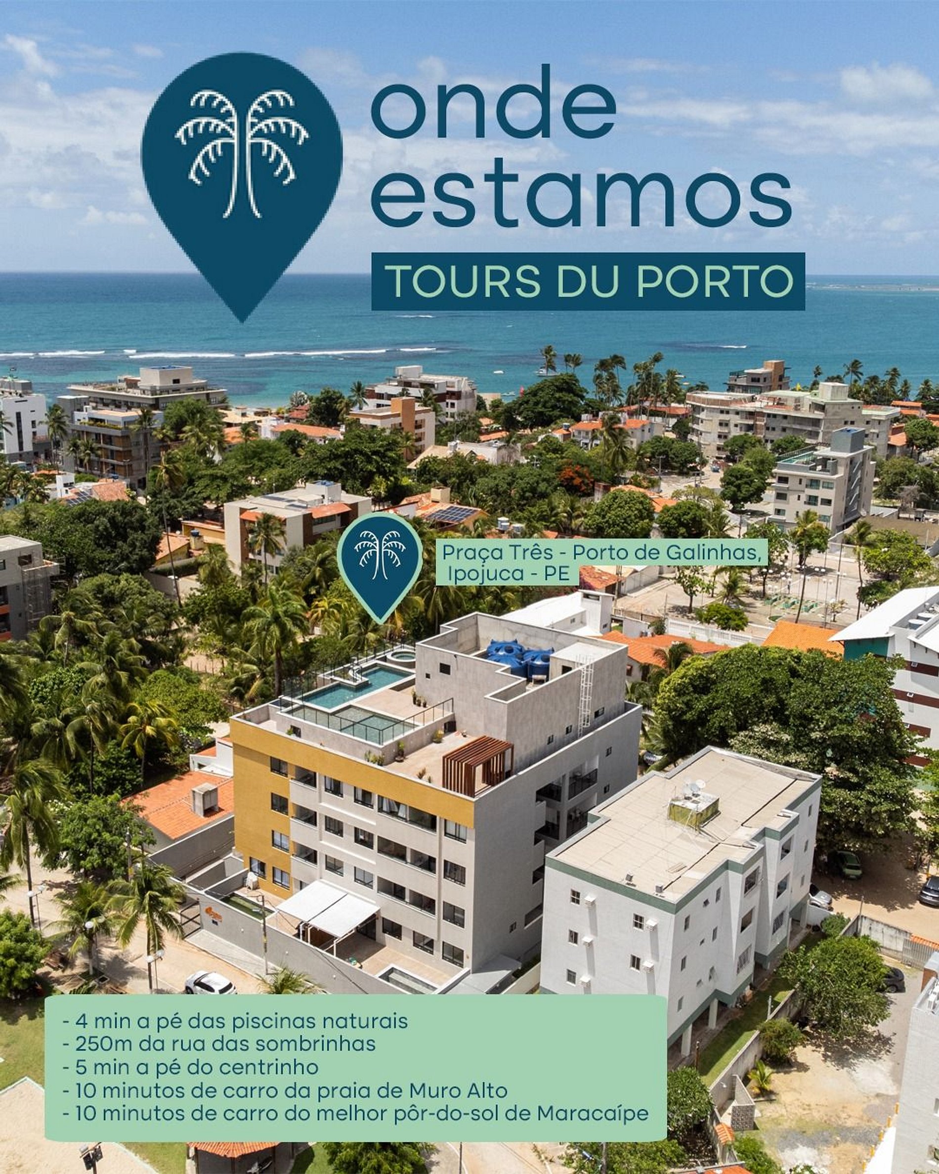 Localizado na Praça três de Porto de Galinhas no Edf Tours du Porto, você terá a conveniência de estar perto de tudo no centro e também a apenas 200 metros das principais praias e piscininhas naturais.