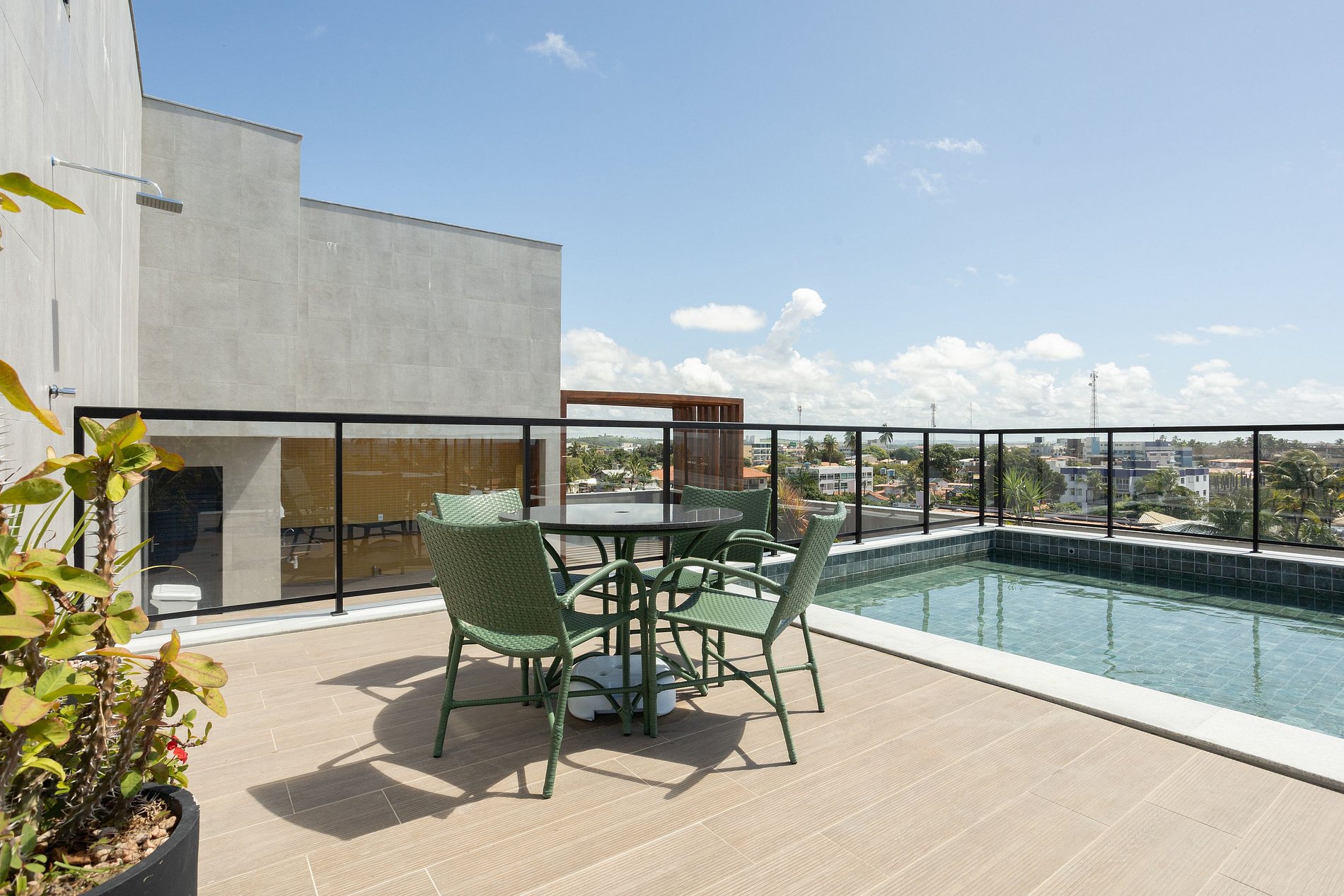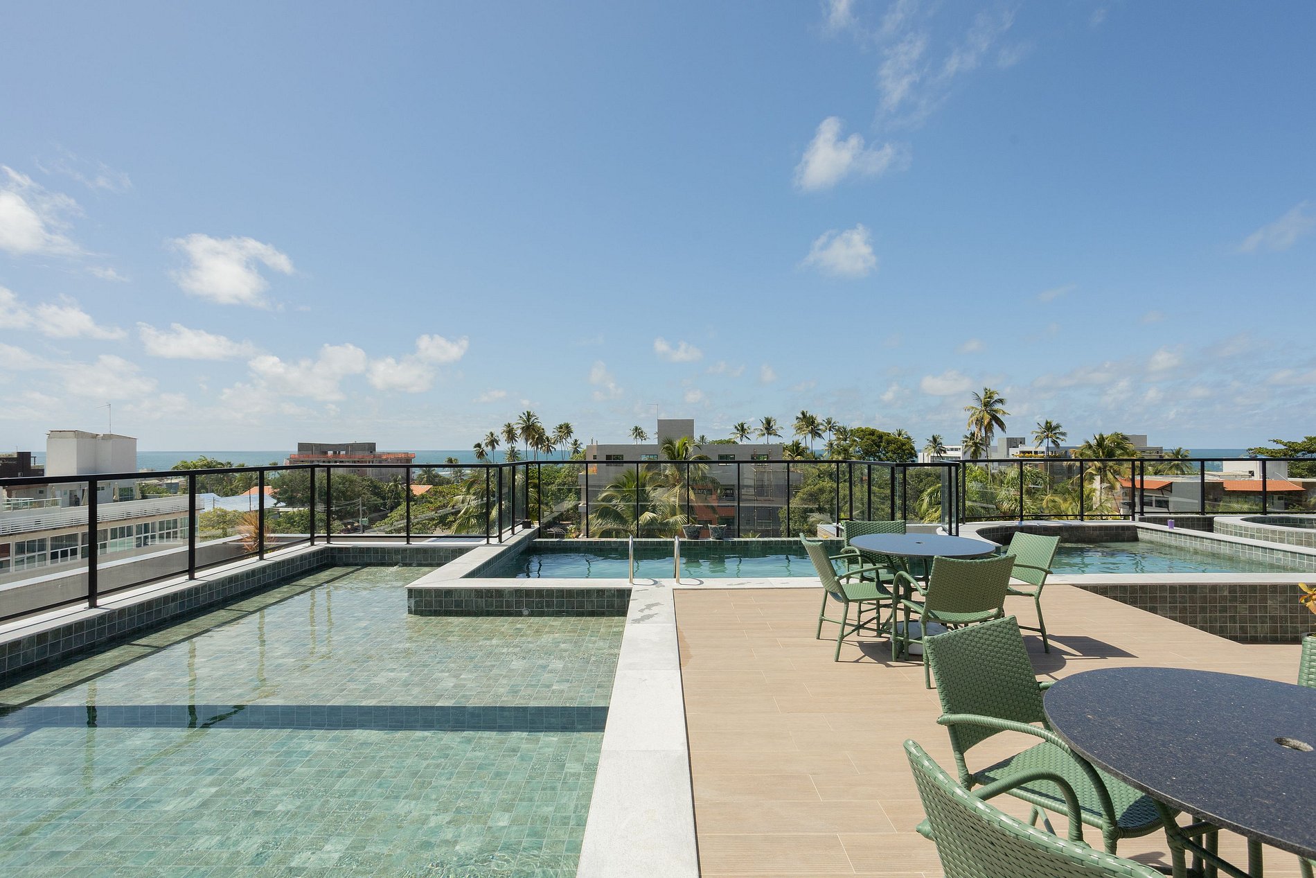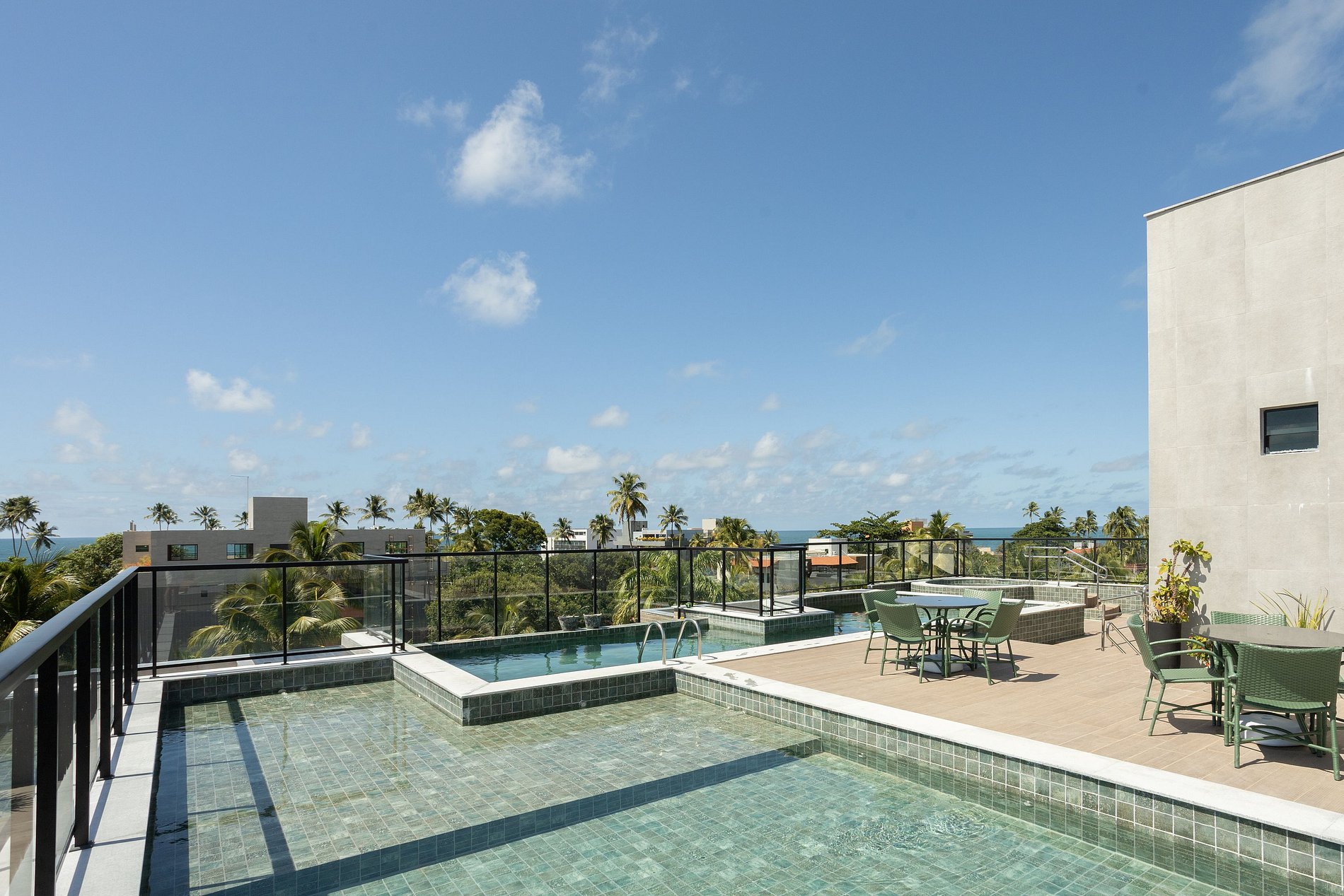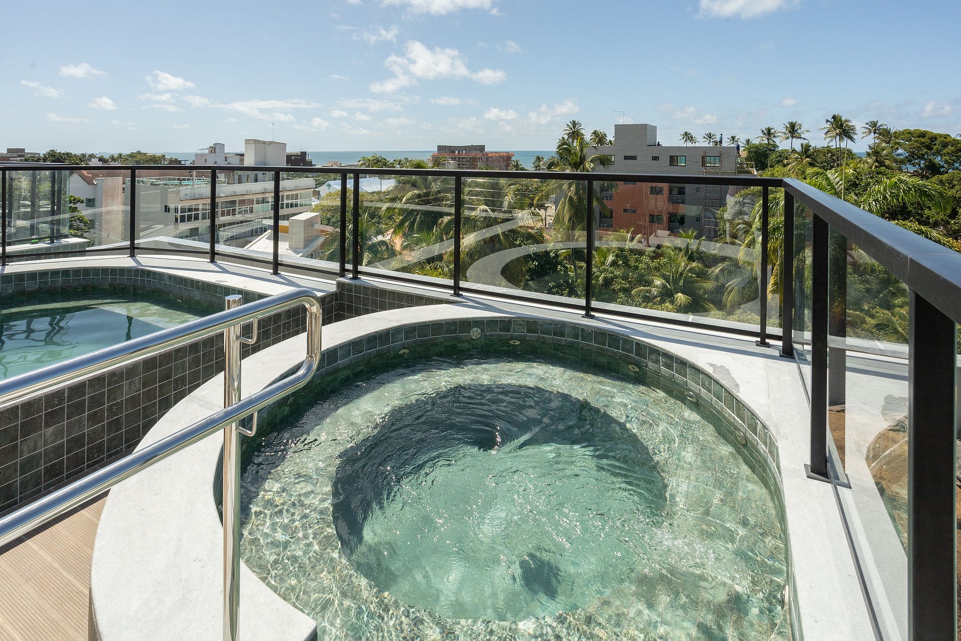 O prédio possui roof top com três áreas de piscinas integradas disponíveis, com linda vista para o mar. Dispõe também de elevador, garagem coberta rotativa.
